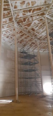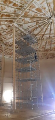 天井部分の塗装や補修を行うには、高さ20m近くの足場を設置する必要があります。