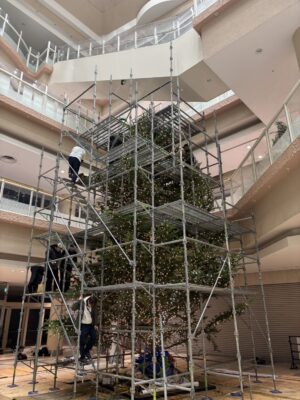 装飾(クリスマス装飾)取り付け用の足場設置を目的とした工事で、